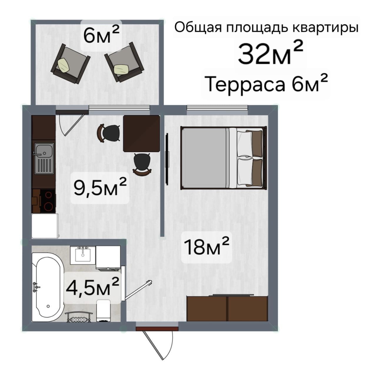 32 (+6м² терраса)